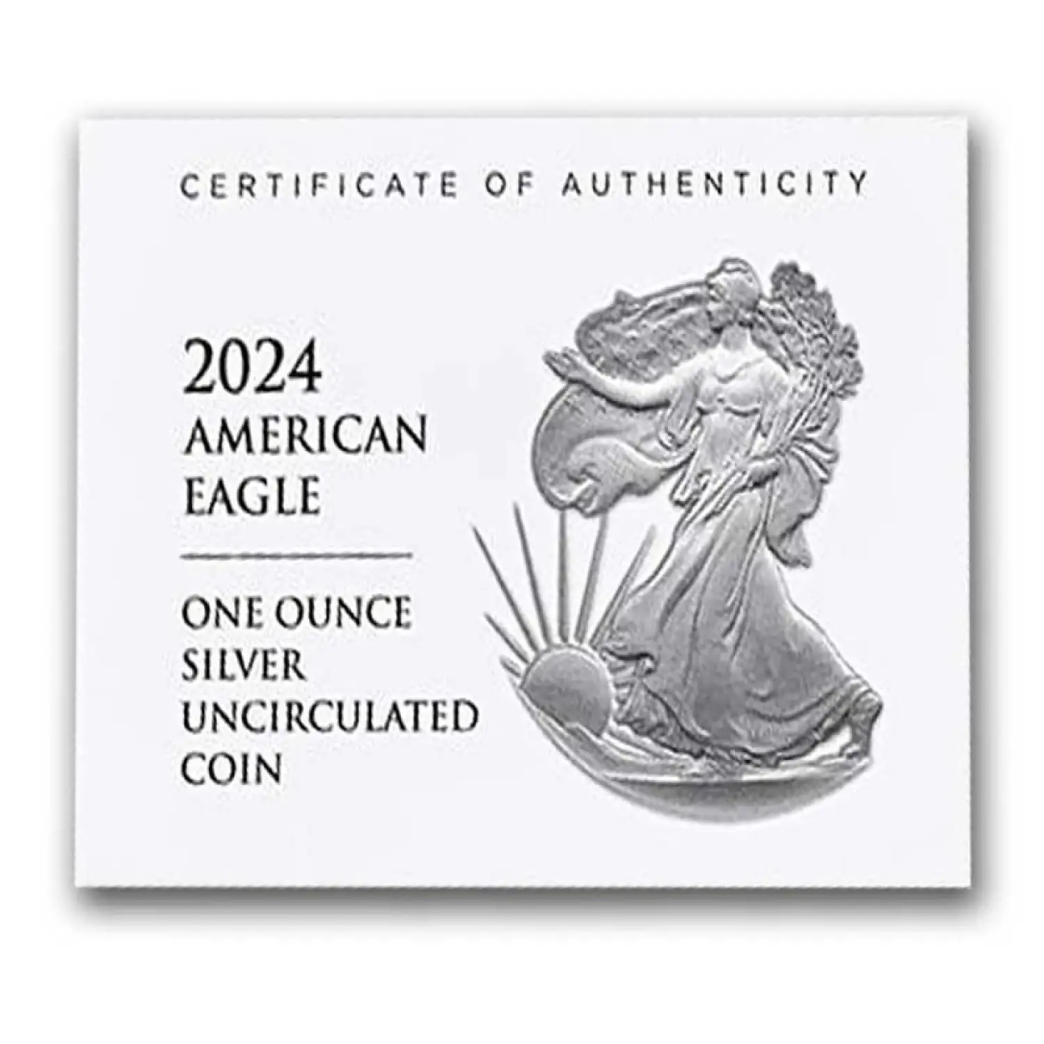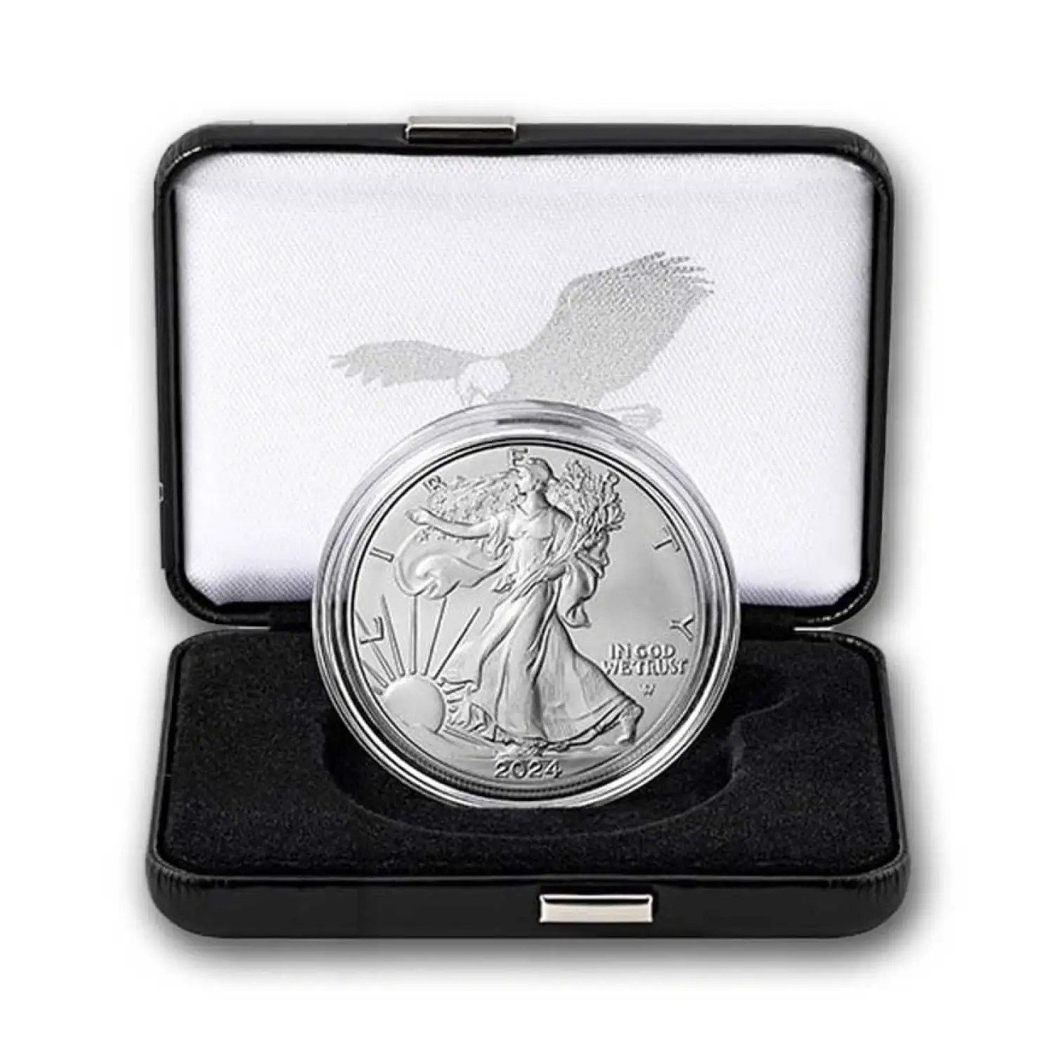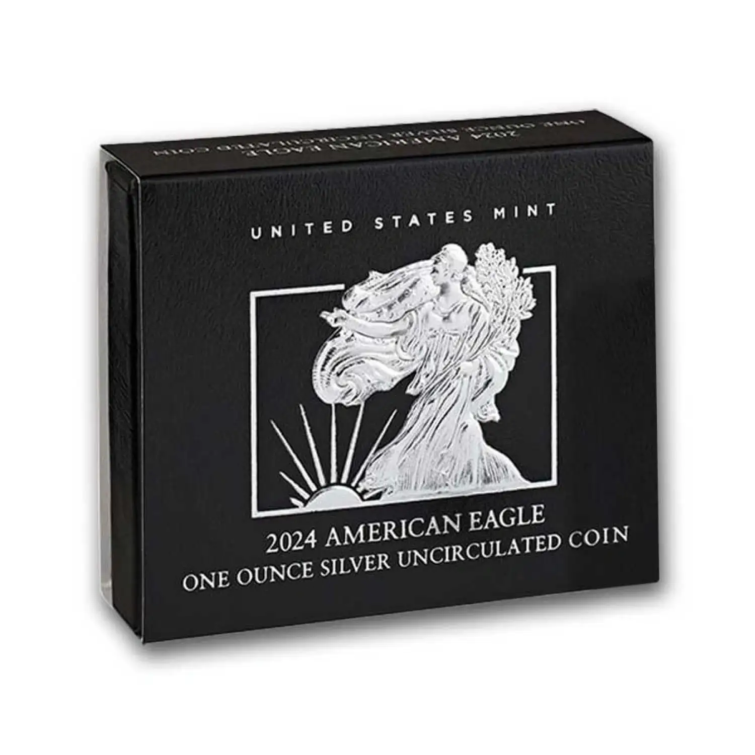 These uncirculated Silver American Eagles bear the “W” mint mark and are struck on specially burnished planchets at the West Point Mint.