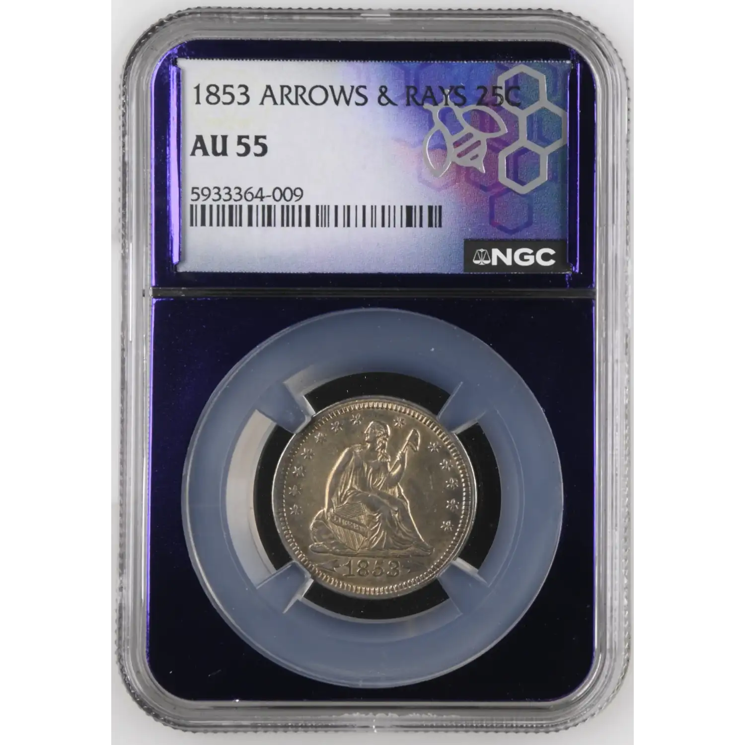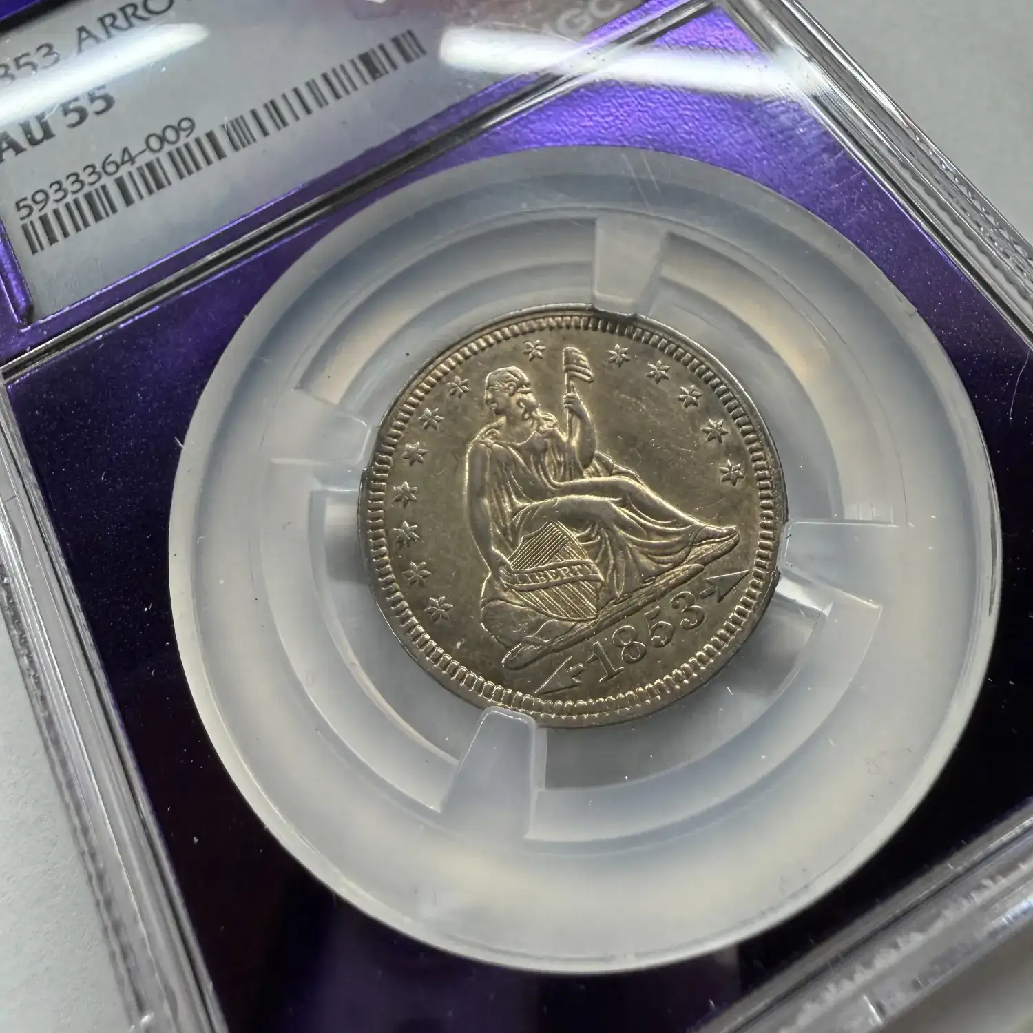 With its one-year-only design elements, early branch mint origin, and attractive AU-55 grade, this 1853-S Seated Liberty Quarter is a standout addition to any advanced collection of U.S. coinage.