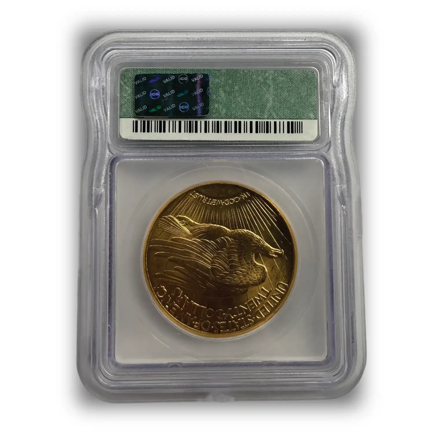 Reverse: Depicts a majestic eagle in flight above the sun’s rays, with “UNITED STATES OF AMERICA” and “TWENTY DOLLARS” above.