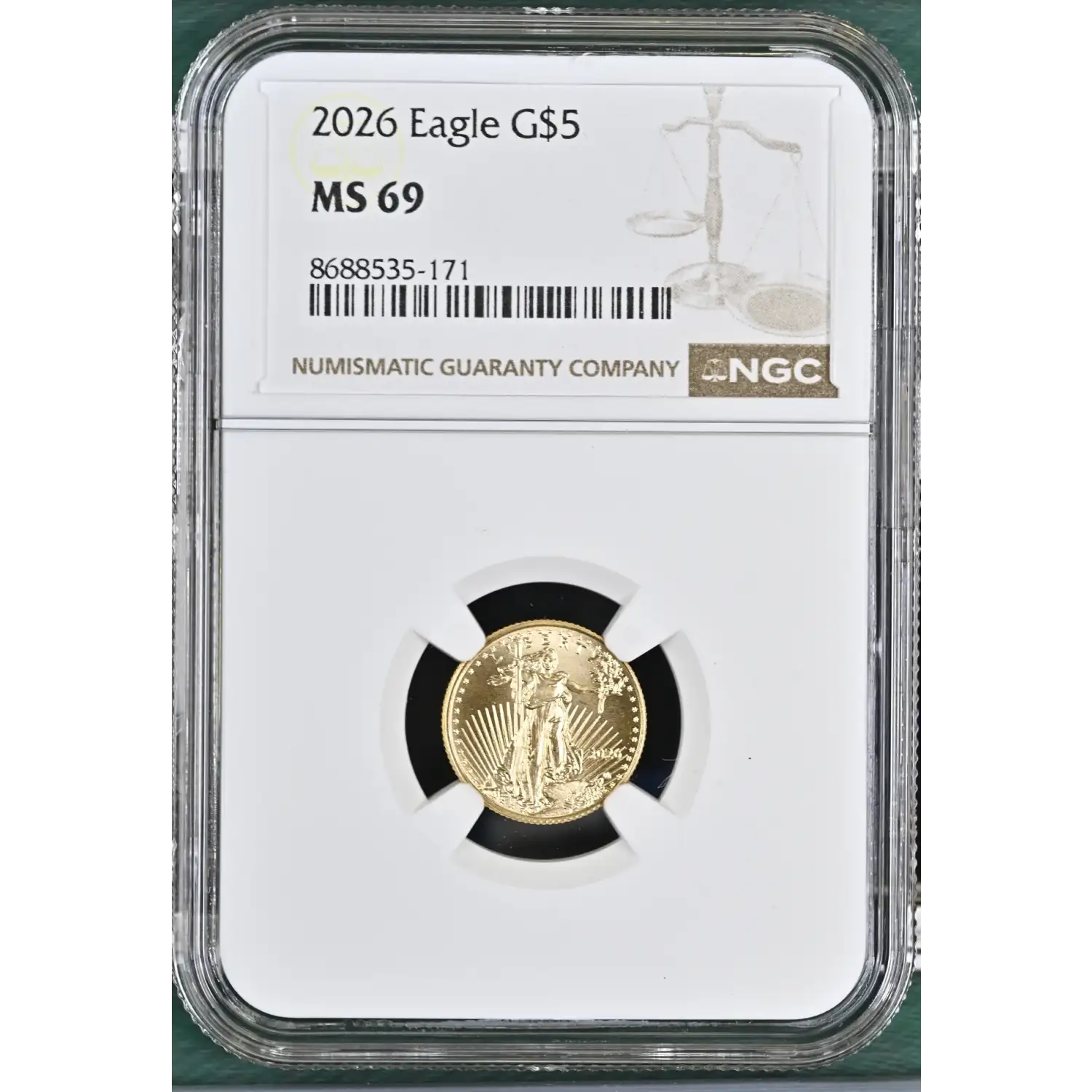 The 2026 1/10 oz American Gold Eagle graded MS-69 by NGC offers an accessible way to own fractional gold with premium certified quality. Combining near-perfect condition, iconic design, and government-backed gold content, this coin is an excellent choice for both investors and collectors.
