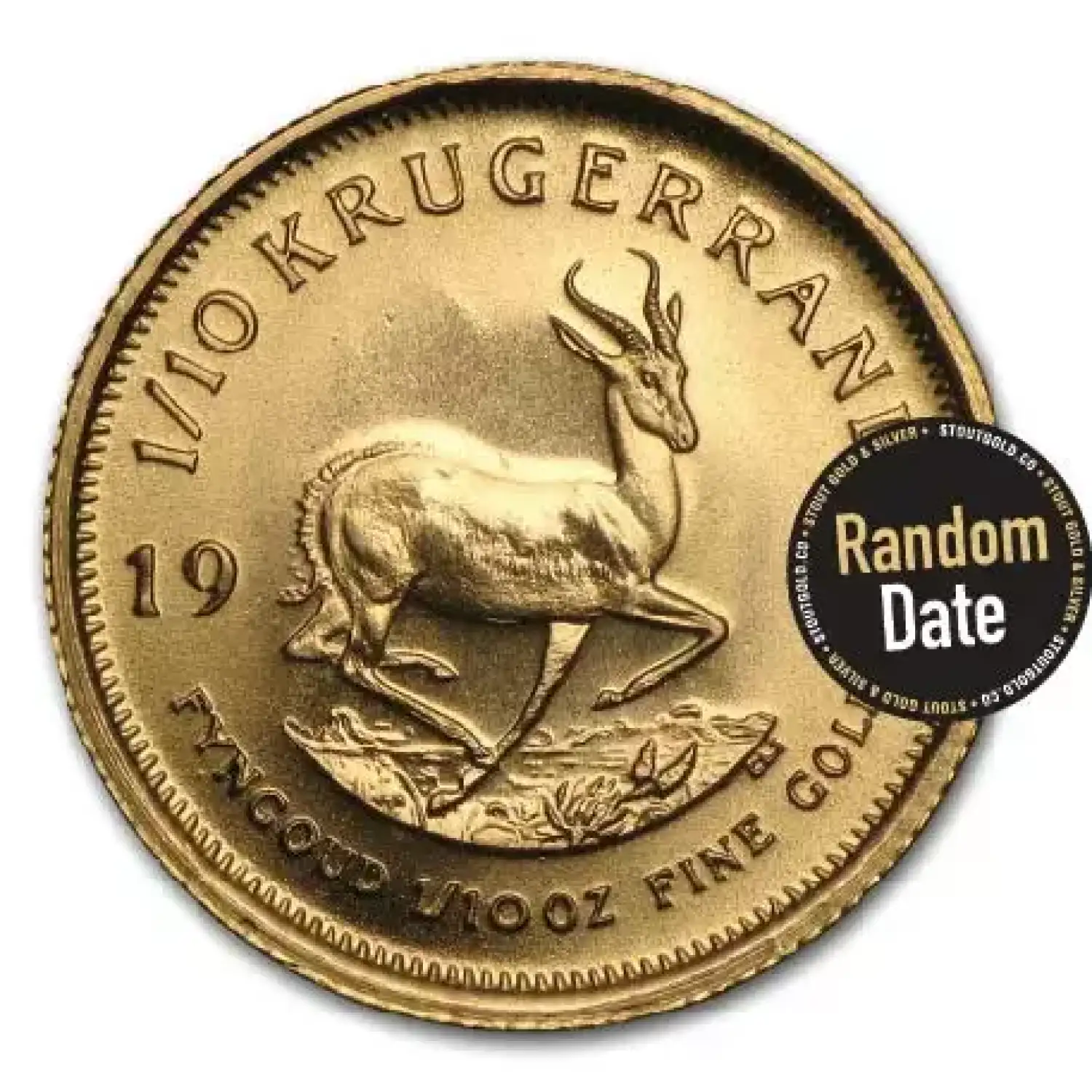 The South African Gold Krugerrand is the first modern gold coin in the world. Each 1/10 oz South African Gold Krugerrand is 0.1 troy ounce of .999 fine gold.The obverse of the 1/10 oz South African Gold Krugerrand features the South African Republic’s first president, Paul Kruger. The reverse of the gold coin depicts South Africa’s symbol, the Springbok Gazelle.