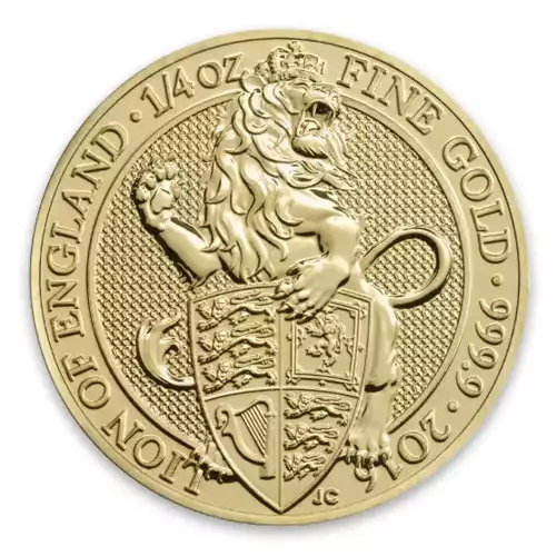 The 1/4 oz 2016 Britain Queen's Beasts: The Lion is the first release in an exciting new 10 coin series. The Britain Queen's Beasts celebrate the British Monarch and the centuries of fascinating heraldry. This gold coin contains 1/4 oz of .9999 fine Gold.